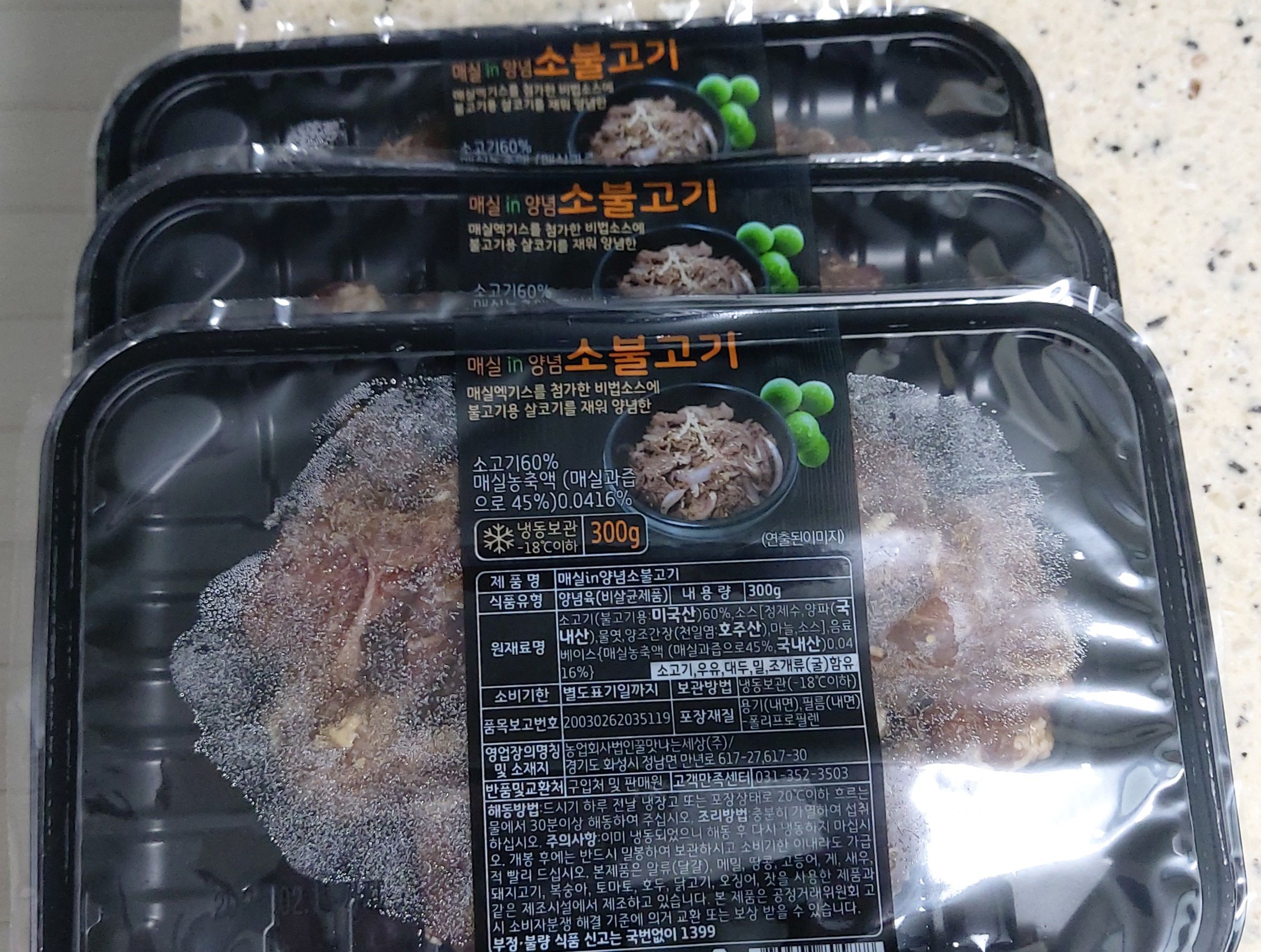일단 밥을 전기밥솥에 안쳐두고, 전날 해동시켜 놓은 양념소불고기를 냉장고에 있는 야채들과 준비합니다.