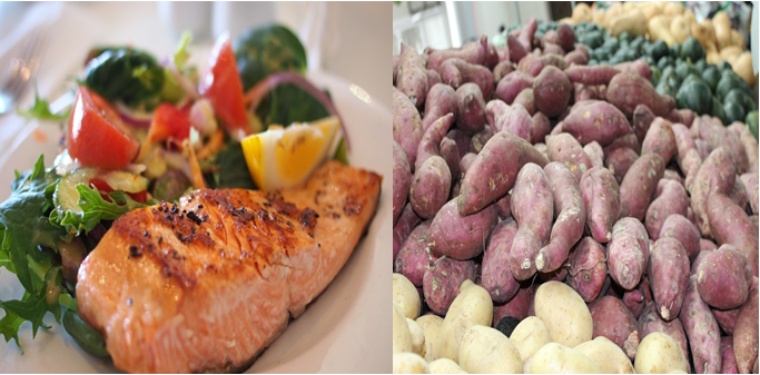생선은 뇌를 건강하게 하는 음식으로 잘 알려져 있습니다. 그런데 뇌건강에 도움을 주는 오메가 3 지방산은 체지방을 소모시키는데 도움이 됩니다. 여기에 단백질 함량까지 풍부하다면 포만감은 더욱 높아집니다. 연어와 구운 고구마의 조합은 포만감을 주면서도 열량이 높지 않은 식사 조합이 됩니다.