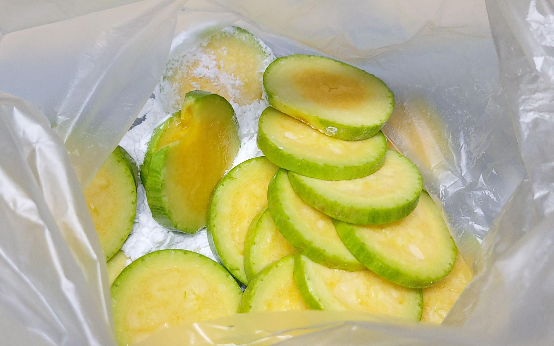 2. 봉지에 전분가루나 밀가루를 호박과 같이 넣어 흔들어주세요