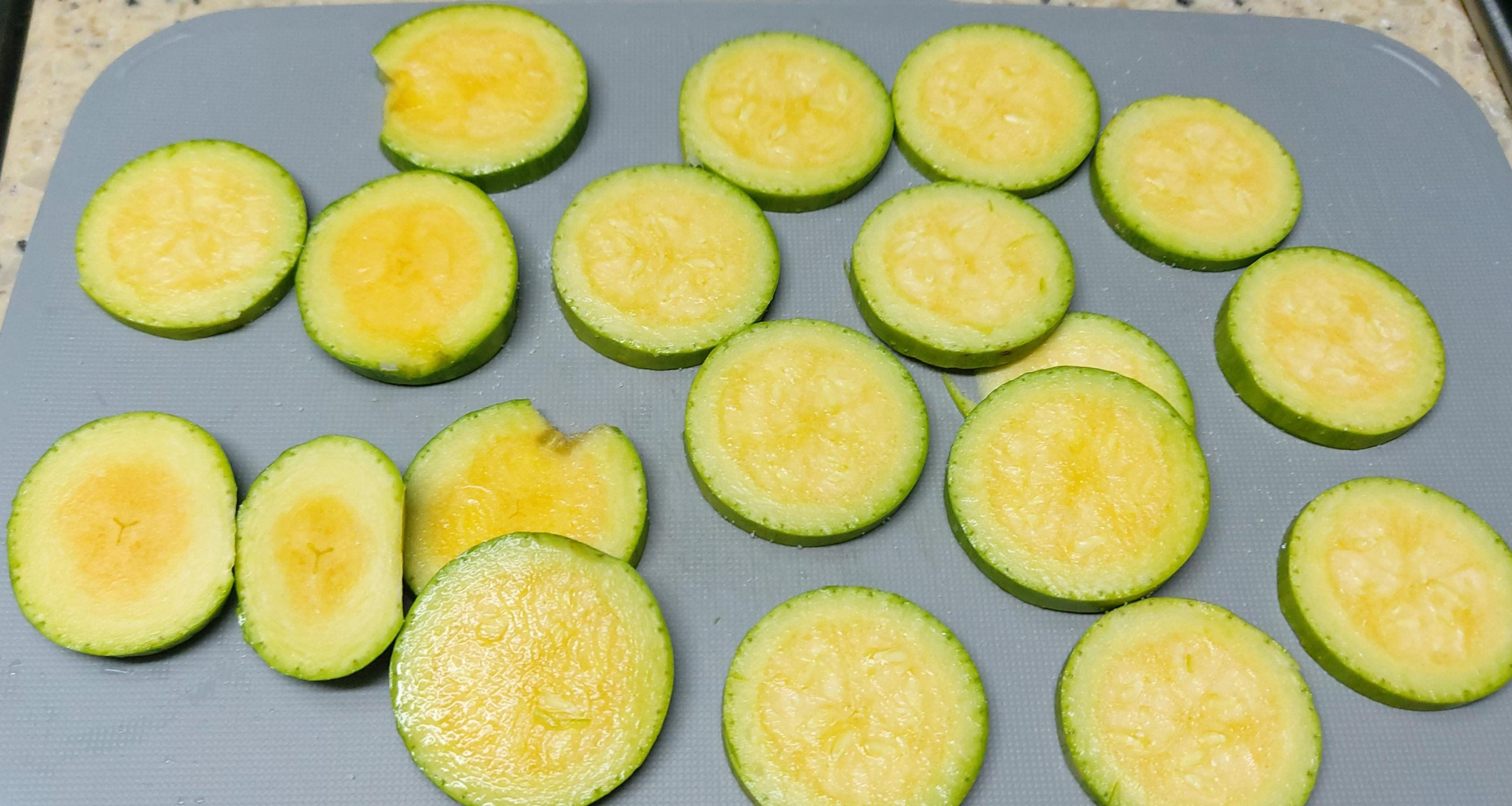 1. 애호박을 도톰하게 썰어 소금을 약간 뿌려놓아요