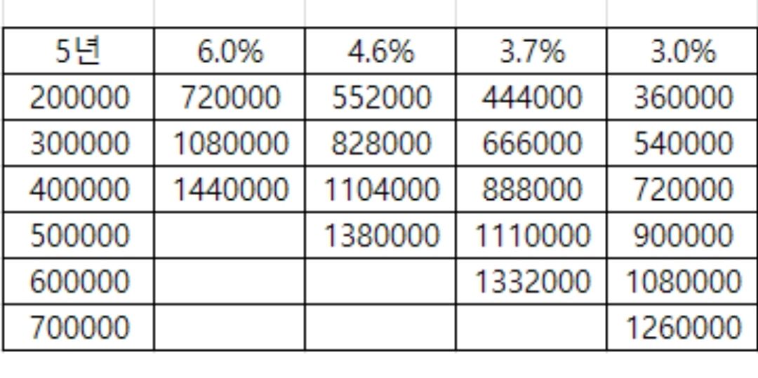 다음은 청년도약계좌만기 5년 기준으로 한 달에 납부하는 금액과 매칭비율에 따른 지원금액에 대해 찾아보았습니다.