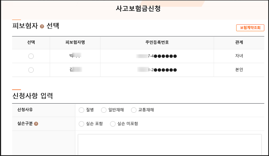 한화생명 앱에서 성인 자녀 보험금 신청하는 순서